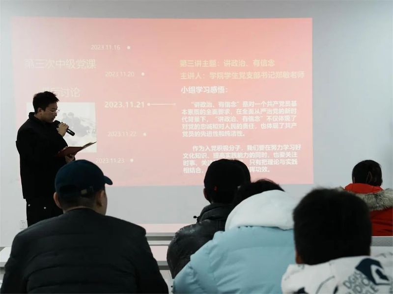 为提高全体中党学员的政治理念素养,2023年12月4日19:00于9号楼501室开展第四分党校第十四期中级班结业汇报展示。参加本次活动的有信息工程学院学生党支部书记郑敏老师、组织委员鲁娇老师及全体中党学员。