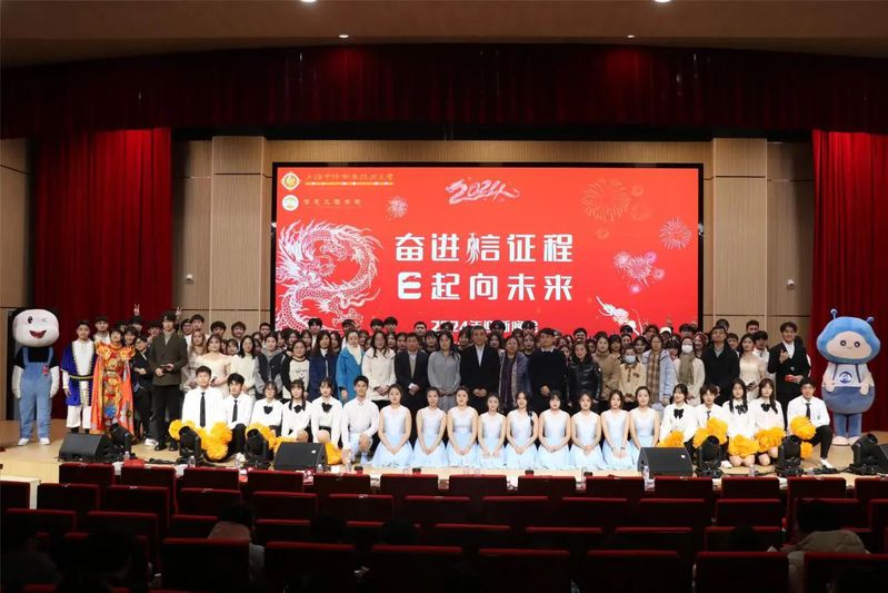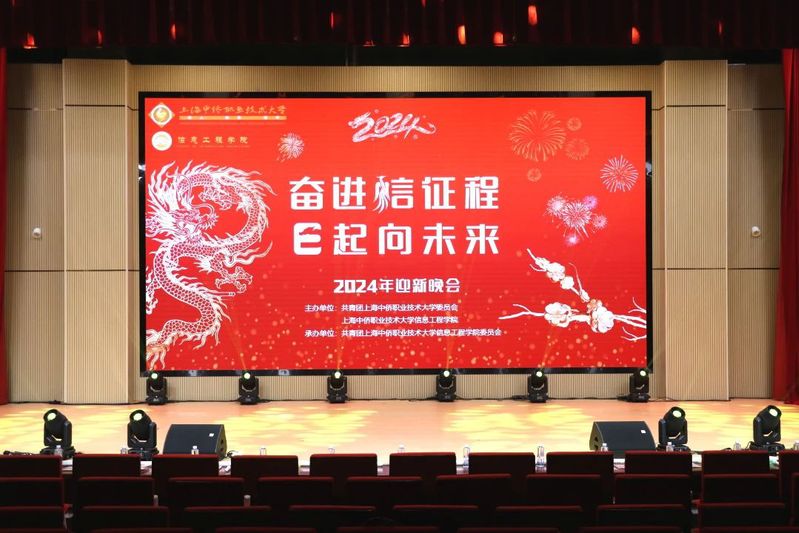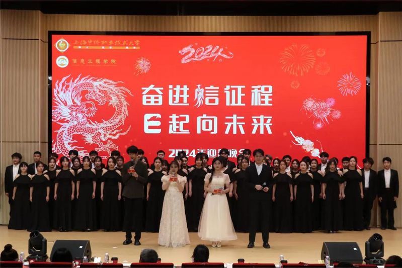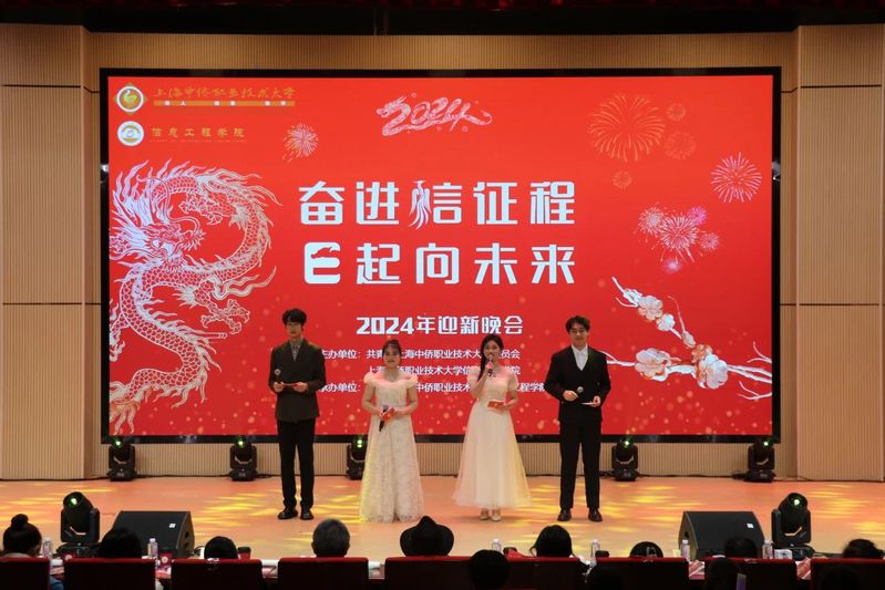 岁序更替,华章日新。为展示新生风貌,共迎新年新气象。上海中侨职业技术大学信息工程学院于2023年12月27日19:00在图书馆2楼学术厅承办了以“奋进‘信’征程,‘E’起向未来”为主题的2023年迎新晚会,本次晚会由“卅载新时代”、“逐梦新征程”和“一起向未来”三个篇章共同组成。晚会通过歌唱、舞蹈、影子舞、情景剧等丰富的艺术形式,展现了学校师生朝气蓬勃的精神风貌和多姿多彩的校园文化生活。在这一个值得庆祝的日子里,师生欢聚一堂、共迎新年。