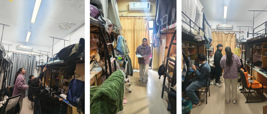 万物复苏,春风渐暖。新学期第一次查寝拉近了辅导员老师们与同学们的距离,彰显学院对学生们学习、生活的关心关怀。本次联查活动对学生宿舍卫生状况、室友关系、宿舍安全隐患等进行了认真细致的检查,同时有针对性地为学生提供帮助,进一步营造了良好的生活环境和学习氛围。