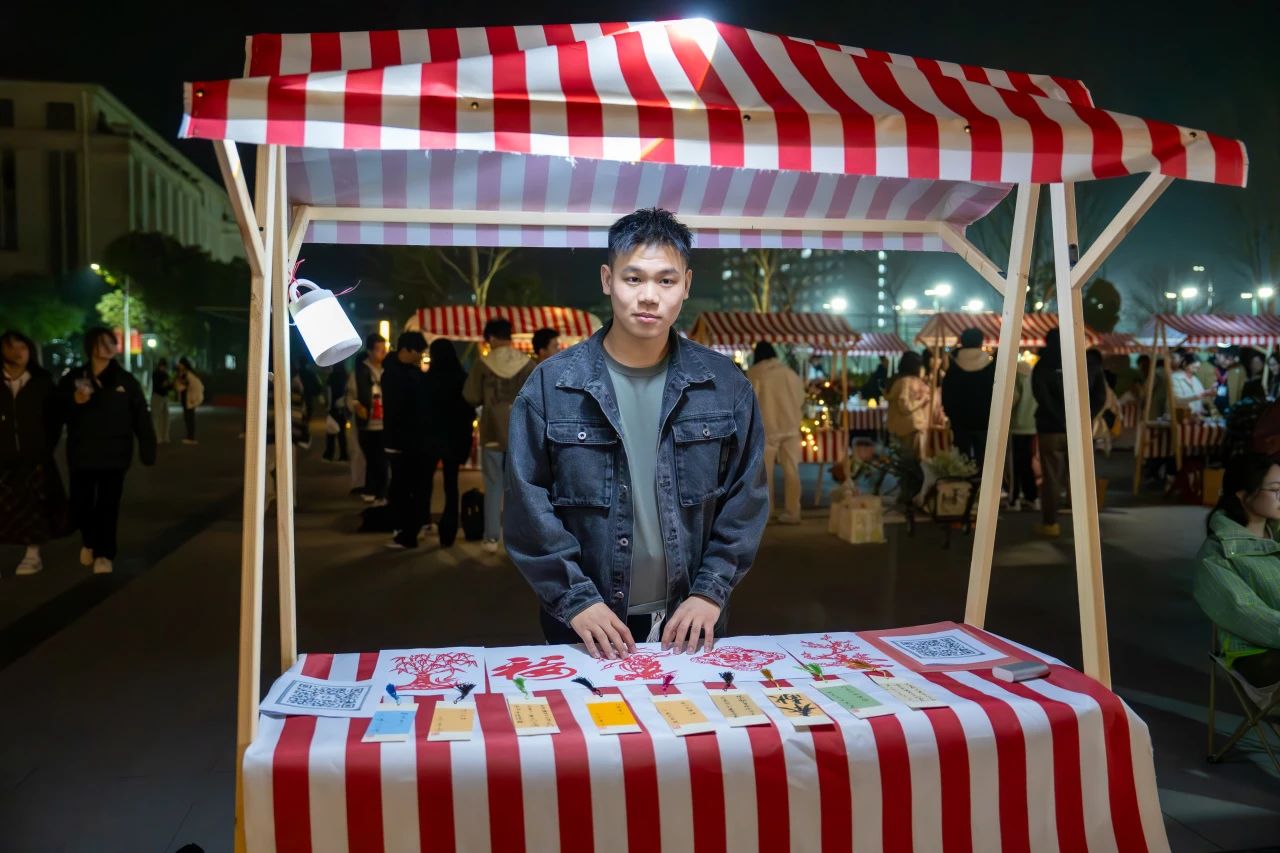 此次活动吸引了众多志愿者主动参与,在活动正式启动前,他们积极投入布置现场的各项任务,同时协助摊主们精心布置摊位。在志愿者们的努力下,夜市的气氛变得温馨而热烈。在信息工程学院的摊位上,志愿者们热情地向同学们介绍着可以免费领取的剪纸和书签,他们的热情感染了夜市的每一位同学,使得整个夜市更加充满活力。可以说,沂河湾公益节夜市的成功举办,离不开每一位信息工程学院志愿者的辛勤付出。志愿者们耐心地为参观的同学们介绍夜市的各个摊位特色,让每一位来访者都能深切感受到夜市的独特魅力。他们的乐于助人和无私奉献精神,赢得了广大同学的一致好评。