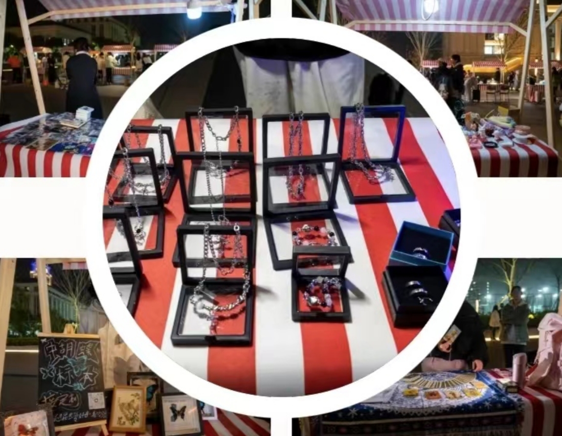 在市集里有一个特别的摊位,专门售卖各类别致的饰品。摊位上陈列的香包,每一只都散发着迷人的香气,仿佛能抚平人们心中的烦躁。而手链则款式各异,尽显优雅与时尚。此外,摊位上还有各式各样的发夹和用扭扭棒制作的花朵,色彩缤纷,设计独特。无论是送给自己还是作为礼物赠予他人,这些饰品都能让人感受到温暖和美好。这个摊位不仅仅是一个售卖饰品的场所,更是一个传递美与艺术的平台。走进这个摊位,就像走进了一个充满艺术气息的小天地,让人流连忘返。