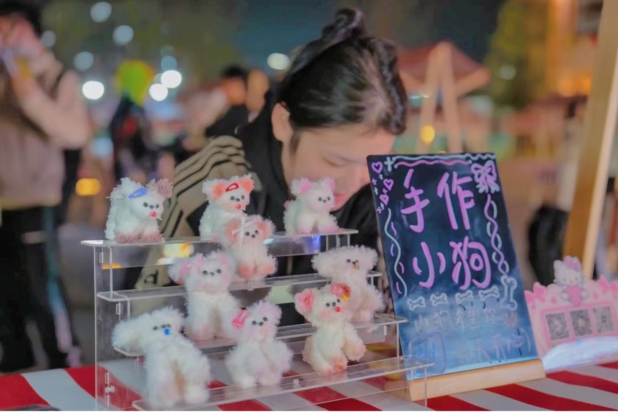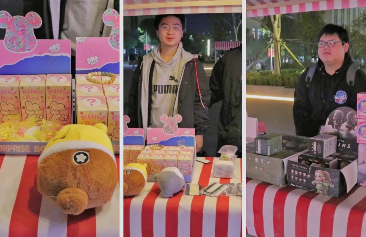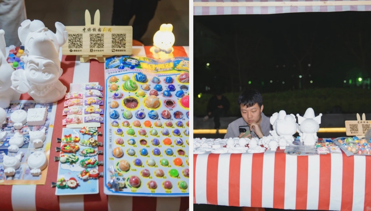 有着精致的雕刻和无限的创意空间的石塑等待着每一位顾客用色彩为其赋予新的生命,给予他们展现出自己的艺术才华和个性魅力的机会。而那些小玩具,更是让同学们仿佛回到了无忧无虑的童年时光。它们承载着一份简单的快乐、更承载着学子们的童年回忆,足以让他们在忙碌的学习生活中找到片刻的轻松与愉悦。摊位上的发夹设计独特、款式多样,无论是甜美可爱还是简约大气,都能满足学生们的不同需求。这个摊位拥有其独特的商品和温馨的氛围,无论是寻找创意灵感的艺术爱好者,还是追求时尚潮流的潮流达人,都能在这里找到属于自己的快乐和满足。
