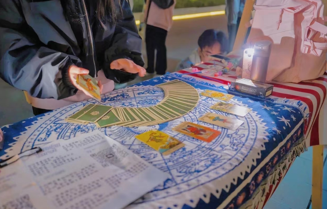 这个充满神秘与魅力的角落,有一个特别的塔罗占卜摊位,由一位热爱塔罗文化的学生精心打造。这里,塔罗牌不仅仅是纸牌,更是沟通心灵与未来的桥梁。每张牌面都承载着千年的传说与哲理,每次解读都是一次与心灵的深度对话。摊主以其精湛的技艺和独到的见解,将塔罗牌中的智慧娓娓道来。无论是探寻人生的奥秘,还是解答心中的疑惑,同学们走进这个充满文墨气息的塔罗占卜摊位,感受那古老而深邃的智慧,均能在这里找到属于自己的答案。