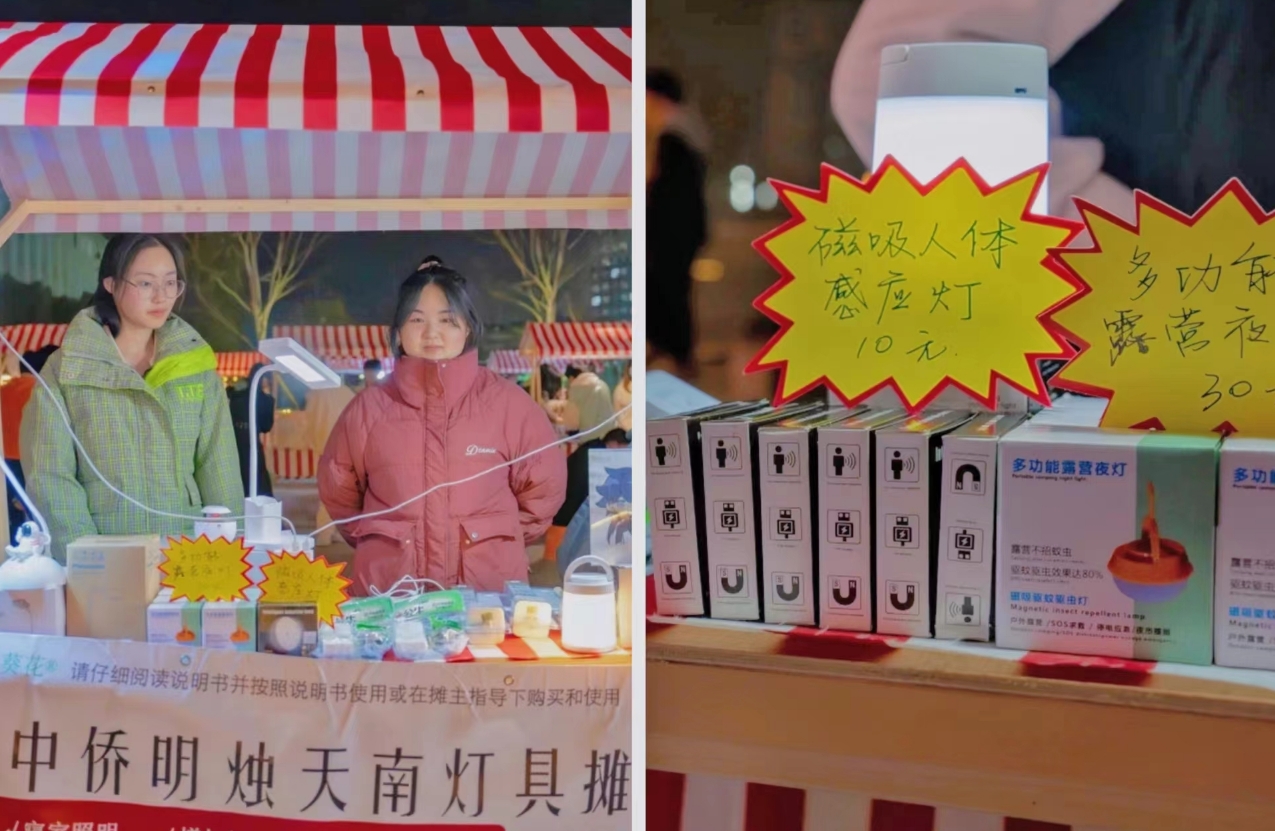 比起其他摊位,这里有着一种与众不同的优雅与质感。这便是日用品专卖摊位,摊位设计简约而不失高雅,尽显品质与格调,专注于为同学们呈现一系列精选的插板、灯和插头等实用家居产品。这里的插头注重安全性能、插板功能强大,而且外观简洁大方,完美融入各种家居风格;灯具则兼具艺术性与实用性,光线柔和,为同学们的生活空间增添一份温馨与雅致。