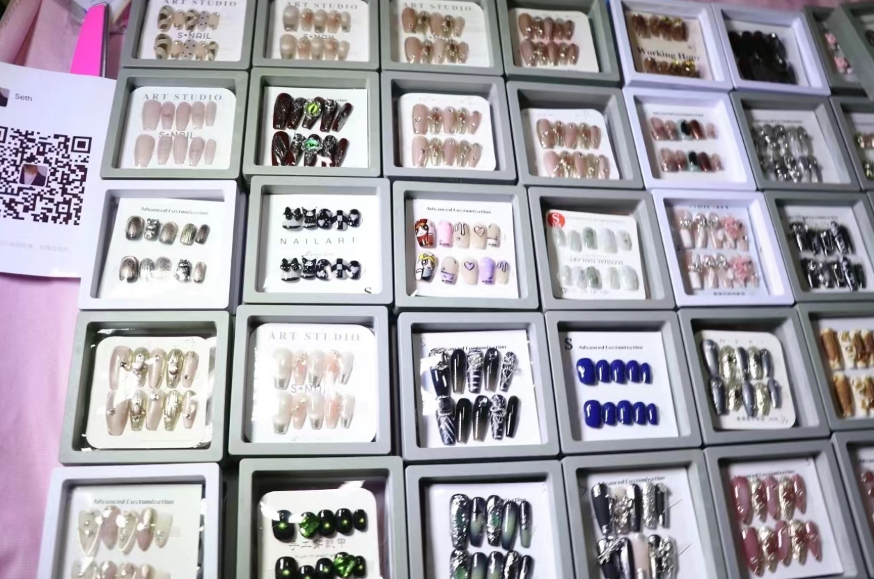 一个充满活力的摊位格外引人注目,如同“指尖魔法屋”一般,用五彩斑斓的穿戴式美甲点亮了整个市集。这里的美甲款式丰富多样,每一款穿戴式美甲以独特的设计和精湛的工艺,诠释着时尚与优雅的完美结合。每一款都散发着独特的魅力。设计师们巧妙地运用色彩和图案,将时尚与创意完美融合,让每一款美甲都成为了独一无二的艺术品。不仅如此,他们还注重美甲的舒适性和耐用性,不仅美观大方,更兼具舒适耐用的特点。