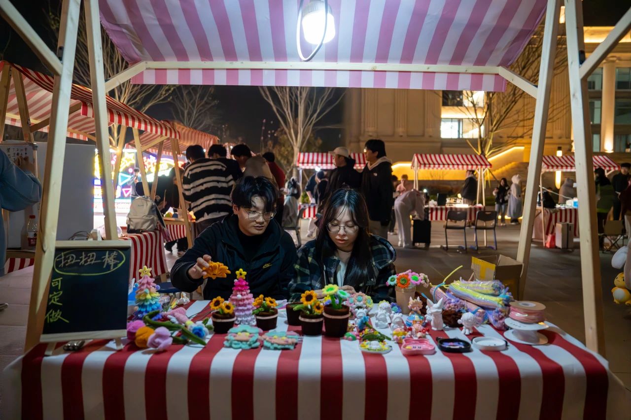 夜色下的校园,夜市璀璨开启。夜韵中,我们共赏这场风华盛宴,感受文化的魅力与活力,这场盛宴展现出了校园文化的璀璨与多元。在这静谧的夜色中,校园化身为一个充满诗意的梦境。集市犹如一幅流动的画卷,缓缓展开,诉说着青春与创意的交融。