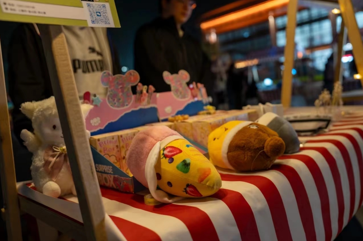 在这个充满惊喜与神秘的角落,盲盒摊位正等待着同学们的到来。架上陈列的盲盒,色彩斑斓,如同一个个神秘的宝藏,每一件都承载着无限的惊喜与可能,等待着有缘人的发现与开启。每一次的开箱,都是一次心跳的旅程,是对未知的期待与探索。在这里,同学们可以尽情享受拆箱的乐趣,感受盲盒带来的无限魅力。