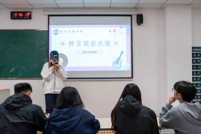音乐是心灵的声音,是满载热爱与梦想的奏章,每一个音符,仿若日出越过山涧,宛似海水涌过岛礁。信息工程学院于4月1日晚19:30,在42号楼211举办外文歌曲初赛,本次比赛共有6位选手参加。