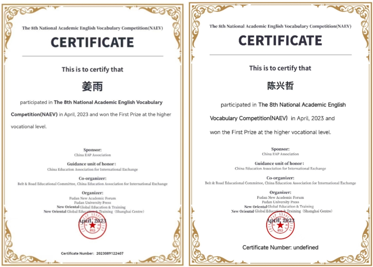 恭喜姜雨、陈兴哲、李欣同学荣获2023年4月第八届全国大学生学术英语词汇竞赛一等奖