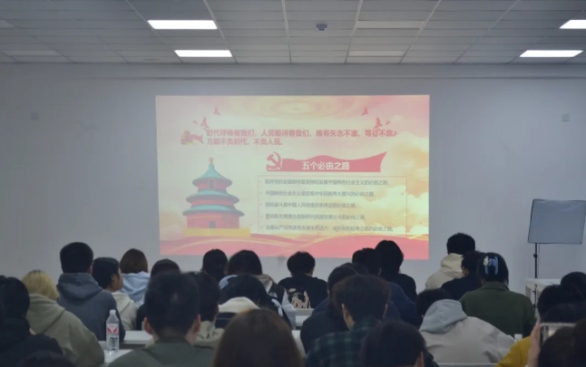 最后鲁娇老师带领大家一起学习党的二十大,并从“五个必由之路”、“两个坚持”、”三个始终”三个方面指出“青年强,则国家强”,同学们要坚定不移地听党话、跟党走,怀抱梦想又脚踏实地,敢想敢为又善作善战,立志做有理想、敢担当、能吃苦、肯奋斗的新时代好青年。中党成员们要深入学习二十大报告的主要内容,将其精神贯彻到实际学习和工作中。