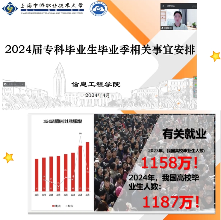 为了强化家校合作,共同推进毕业生就业工作,并为后续就业奠定坚实基础,信息工程学院近日通过腾讯会议分批次召开了以“家校携手促就业,共创未来新篇章”为主题的2024届专科毕业生家长会暨学业就业双促推进会。学院党政班子成员、国际交流处处长王凌、毕业班辅导员及众多毕业生家长齐聚一堂,共同探讨毕业生的发展前景和就业策略。会议由学院党总支书记刘群老师主持。