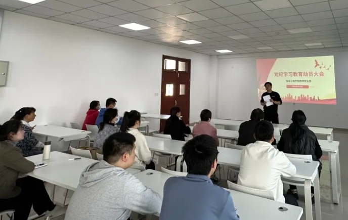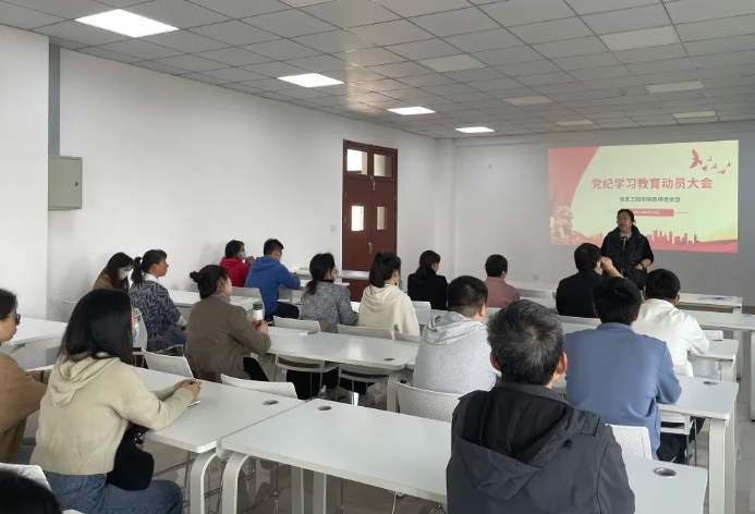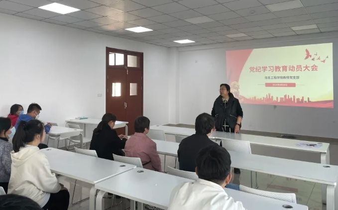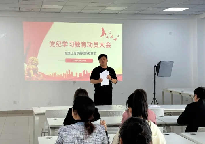 2024年4月18日,信息工程学院教师党支部于9号楼501教室开展党纪学习教育动员大会,出席本次会议的有信息工程学院赵欣院长、党总支副书记唐斌、以及我院全体党员教师。