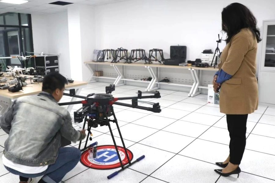 参观过程中,来访人员先后参观信息工程学院35栋4楼实验室、学校主要科研设施实训室等。在实训实验室的展示区,参观人员体验了我院在无人机操作、编程、调试等方面技能的操作。大家对此表示高度赞赏,并对我院在无人机教育领域的创新实践给予充分肯定。