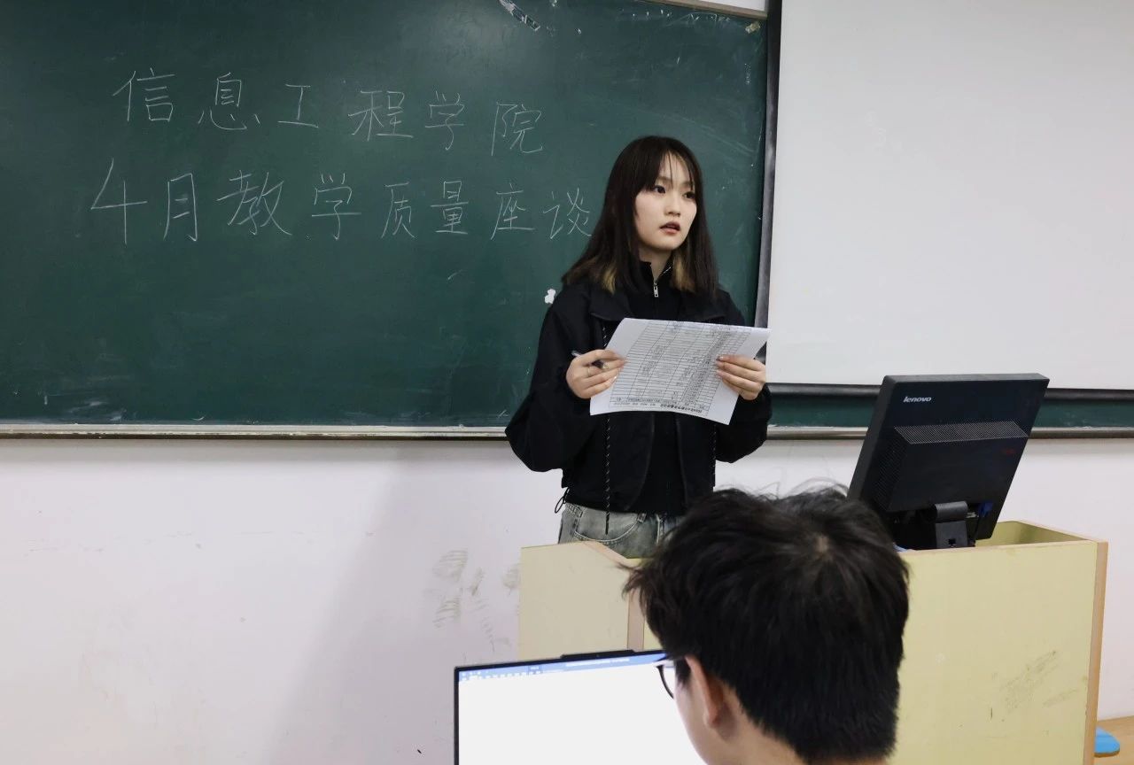 为进一步提升信息工程学院课堂教学质量,了解信息工程学院同学们对于教学工作的意见及建议,信息工程学院团委、学生会于4月24日晚7点40分在4-505会议室组织召开了教学质量座谈会。