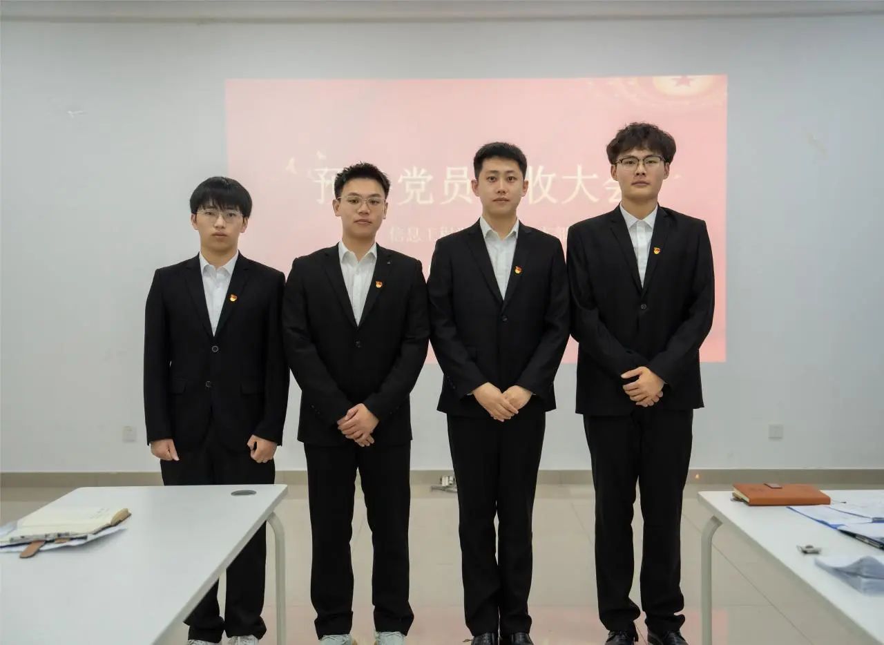 为进一步加强和推进学生党员队伍建设,切实提高学生党员发展质量,保持学生党员队伍先进性和纯洁性,提高新党员党性修养及队伍素质,信息工程学院学生党支部于2024年5月30日17:00在9号楼501室召开预备党员接收大会。会议由信息工程学院学生党支部组织委员鲁娇老师主持,信息工程学院党总支副书记唐斌、学生党支部书记郑敏、团委书记吴玮琪、信息工程学院学生支部师生党员、李宜宸等4名发展对象参加会议。