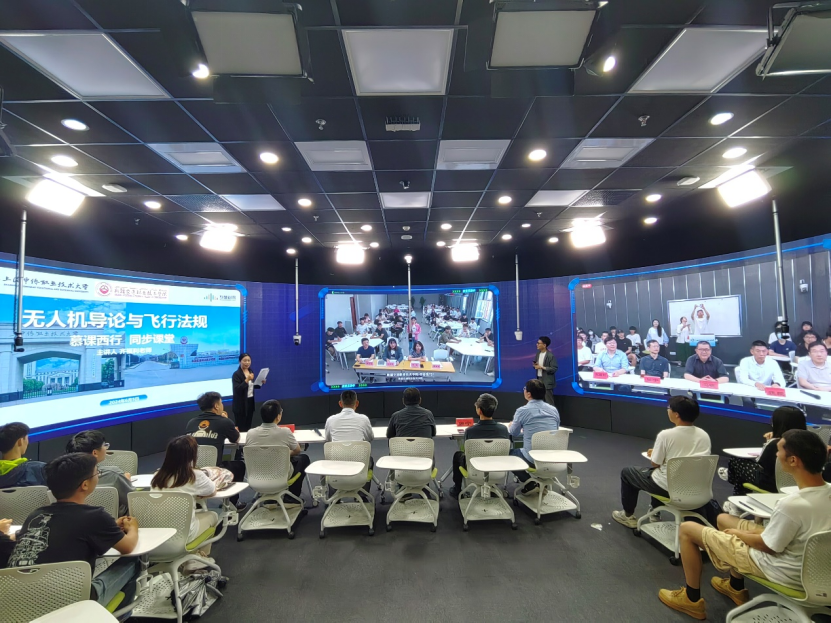 无人机专业主任齐福利老师主讲的《无人机导论与飞行法规》,授课重难点清晰,课堂氛围浓厚,运用案例分析便于学生深入理解并记忆知识点,重难点突出且设置多个互动环节。上海中侨职业技术大学与新疆交通职业技术学院近百名同学全程认真听讲、积极思考互动并围绕课堂内容开展深入讨论,课程取得了良好的课堂效果。