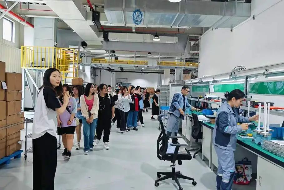 在企业老师的带领下同学们实地参观实验室、测试实验室和观摩整个生产线,深刻感受到了创新的设计理念、先进的生产设备和流程对行业发展的推动作用,获得了对技术应用的直观认知。