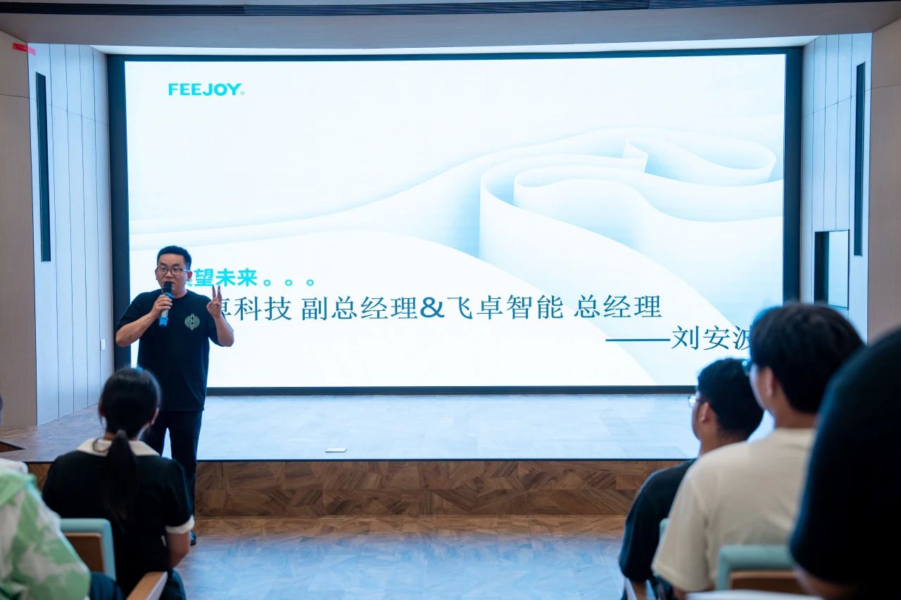 飞卓科技副总经理、飞卓智能总经理刘安波站在企业的角度,从专业的学习路径出发,对行业的就业前景、技术发展趋势进行分析并提供个人职业规划方面的建议,对同学们未来的职业发展有着重要的指导意义。企业领导和现场的师生对于今后就业、专业能力的学习等方面进行互动交流。