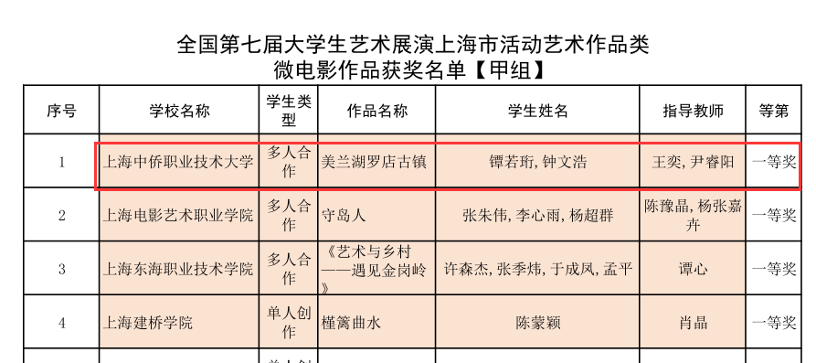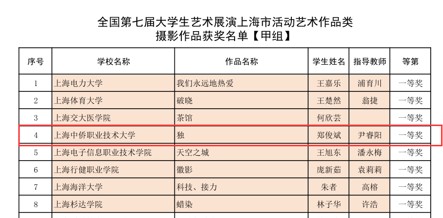 【喜讯】祝贺信息工程学院师生在全国第七届大学生艺术展演上海市活动中喜获佳绩
