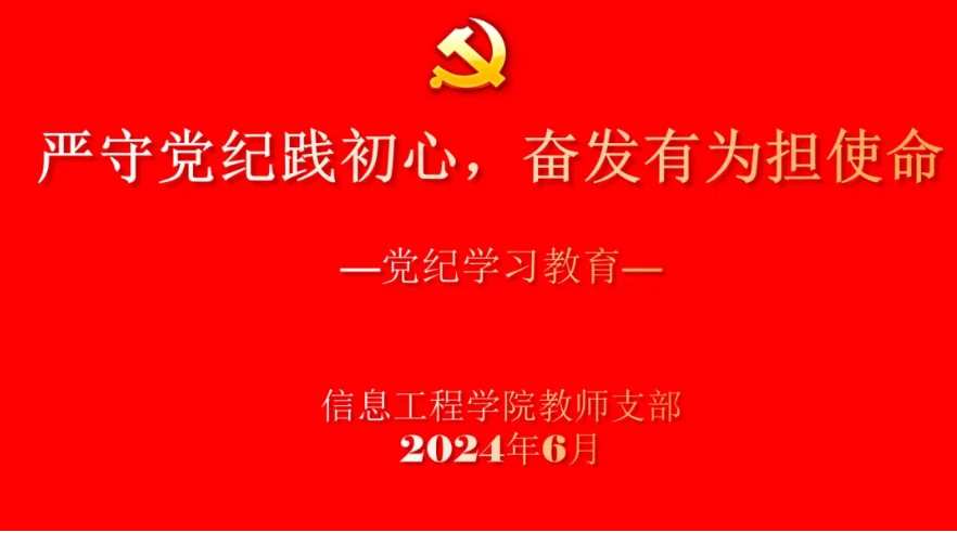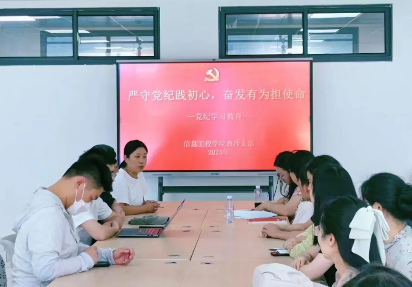 6月26日,信息工程学院教师党支部开展主题为“严守党纪践初心,奋发有为担使命”的专题学习会。此次学习旨在深入学习贯彻党中央关于党纪学习教育的精神,进一步提升教师党员的纪律意识、党性修养和使命担当。