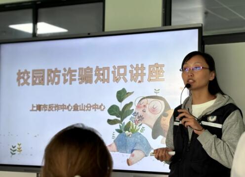 宣传员首先向新生们介绍了近年金山区发生的电信网络诈骗的数据,并向各位同学指出:电信网络诈骗是指犯罪分子通过电话、网络和短信方式,编造虚假信息,设置骗局,对受害人实施远程、非接触式诈骗,诱使受害人给犯罪分子打款或转账的犯罪行为。