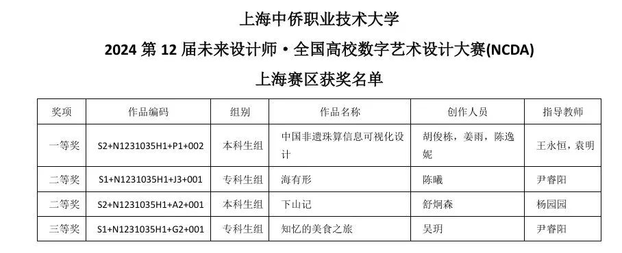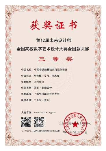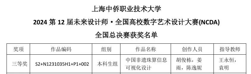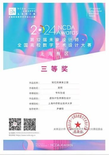 近日,由工信部人才交流中心主办的2024年第十二届未来设计师·全国高校数字艺术设计大赛(NCDA)公布获奖名单,信息工程学院学子取得全国总决赛三等奖1项,市赛一等奖1项,二等奖2项,三等奖1项的好成绩。