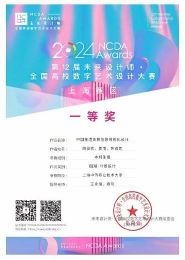 未来设计师·全国高校数字艺术设计大赛(NCDA)大赛始于2012年,连续入选中国高等教育学会《全国普通高校学科竞赛排行榜》,是15个省教育厅发文立项,“学习强国”学习平台支持,对接联合国国际赛的国家级大学生竞赛。自大赛启动以来,信息工程学院高度重视,学院组建指导老师团队,将大赛内容融入专业课程,不断强化学生技术创新基础知识与实操技能培养,为大赛优异成绩的取得奠定了良好基础。