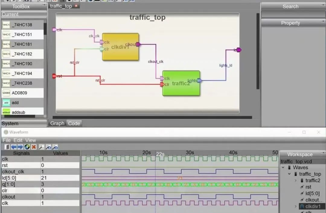 Robei EDA芯片设计软件:是一款全新的集成电路设计工具,不仅具备传统设计工具的代码编写、编译、仿真功能,并且增加了可视化和模块化的设计理念,具有模块设计透明化,方便模块重新利用,加快设计进度等特点。可实现顶层跨平台,图形和代码相结合的设计优势,将IC设计简化到模块、端口、导线三个基本元素,并自动生成端口定义的Verilog代码以及约束文件。Robei可视化芯片设计软件可以提供74系类器件的仿真与模拟。可以仿真FPGA、MCU、状态机、接口电路设计等,并提供了大量的IP库:计数器、ALU、流水灯自动售货机、移位寄存器、浮点计算单元(FPU)、FIFO、串口通信、信号处理、图像处理、可重构机器人、RISC处理器等。