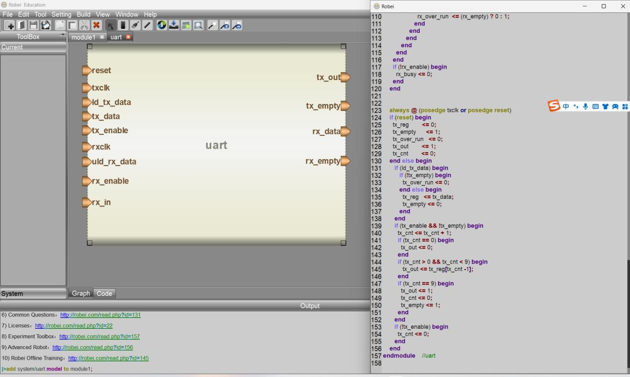 以上是学生基于Robei-EDA做的spi和uart协议模块、代码和仿真波形截图。