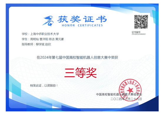 近日,第七届中国高校智能机器人创意大赛的总决赛在浙江省余姚市隆重举办。参赛队伍来自来自清华大学、上海交通大学、浙江大学、哈尔滨工业大学、西安交通大学等全国27个省(自治区、直辖市)的382所高校,共计1366支队伍,参与人数达到4192人。在此次大赛中,信息工程学院由柳学斌、赵欣老师组建的2支参赛队表现出色,荣获专项赛二等奖1项、三等奖1项,全国三等奖1项。
