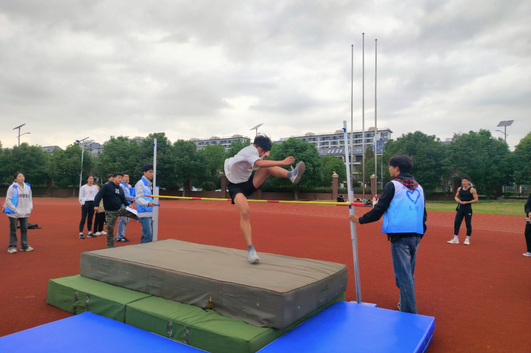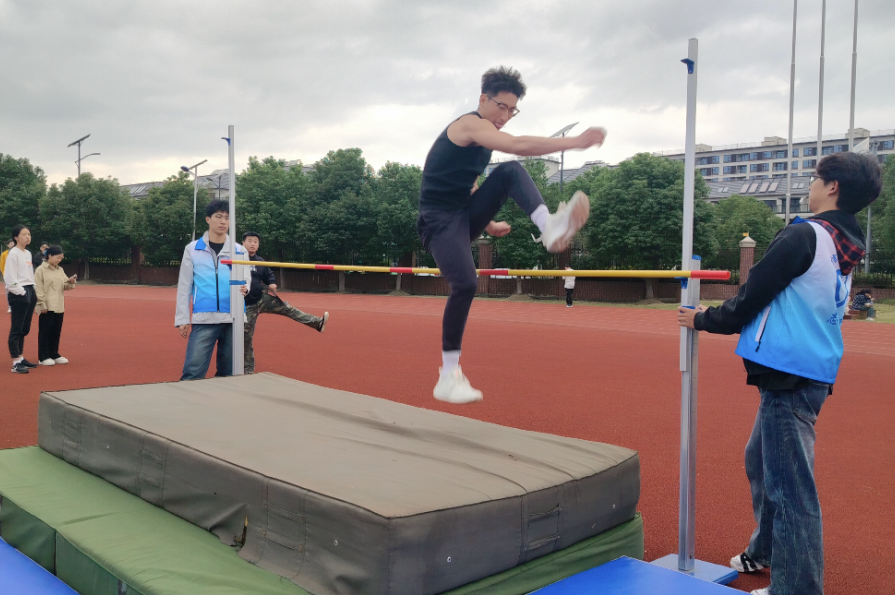 跳高场地上,横杆高高架起,宛如一道等待跨越的难关,静静地等待着勇敢者的挑战。选手们个个精神抖擞、摩拳擦掌,准备迎接这一挑战。他们目光专注,步伐坚定地朝着横杆跑去,身体在空中划出一道道优美的弧线,顺利越过横杆,赢得了旁人的阵阵掌声与喝彩。