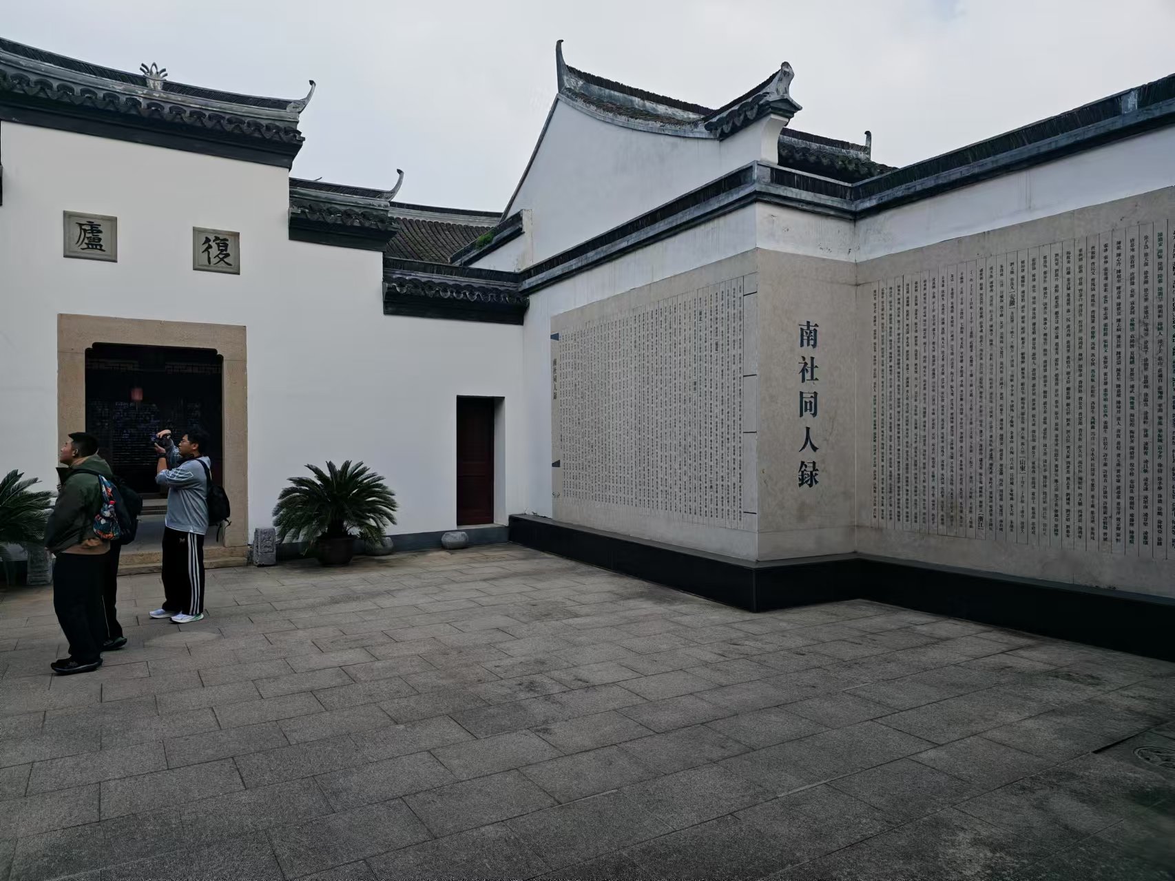 从学校出发后,同学们便来到上海南社纪念馆进行参观。这里既是南社纪念馆,也是南社第二任主任姚光的故居。常言道:“武有黄埔,文有南社。”这座建于清末的四进老宅院,有着木刻雕栏、高墙深院,尽显大户人家的气派。南社,这个曾在中国文化史上书写下浓墨重彩篇章的文学社团,如今正凭借着这一方小小的纪念馆,向世人娓娓诉说着它往昔的辉煌与一路走来的不易。