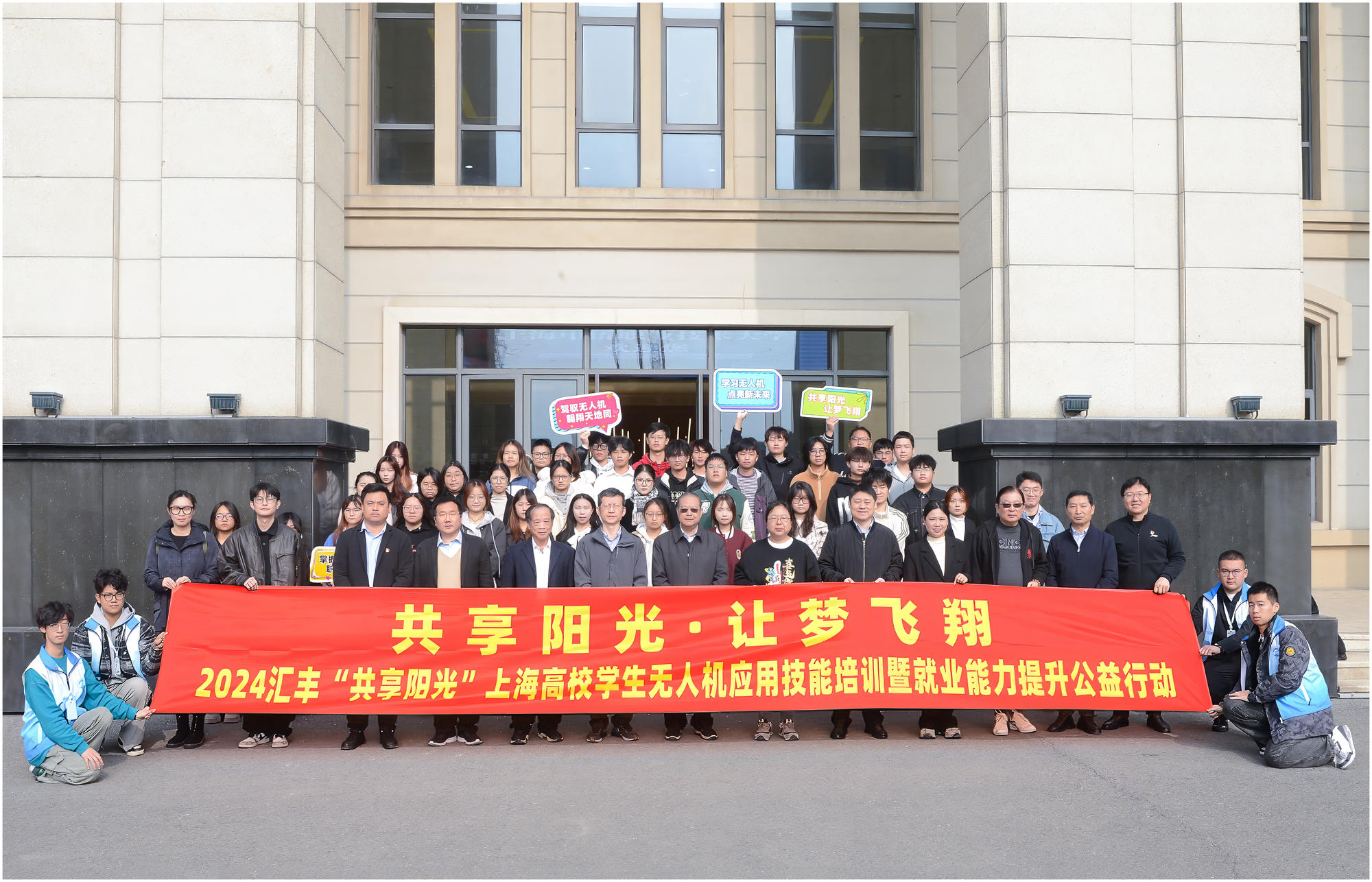 2024年11月22日,汇丰“共享阳光”上海高校学生无人机技能培训暨就业能力提升公益行动项目启动仪式在上海中侨职业技术大学举行。