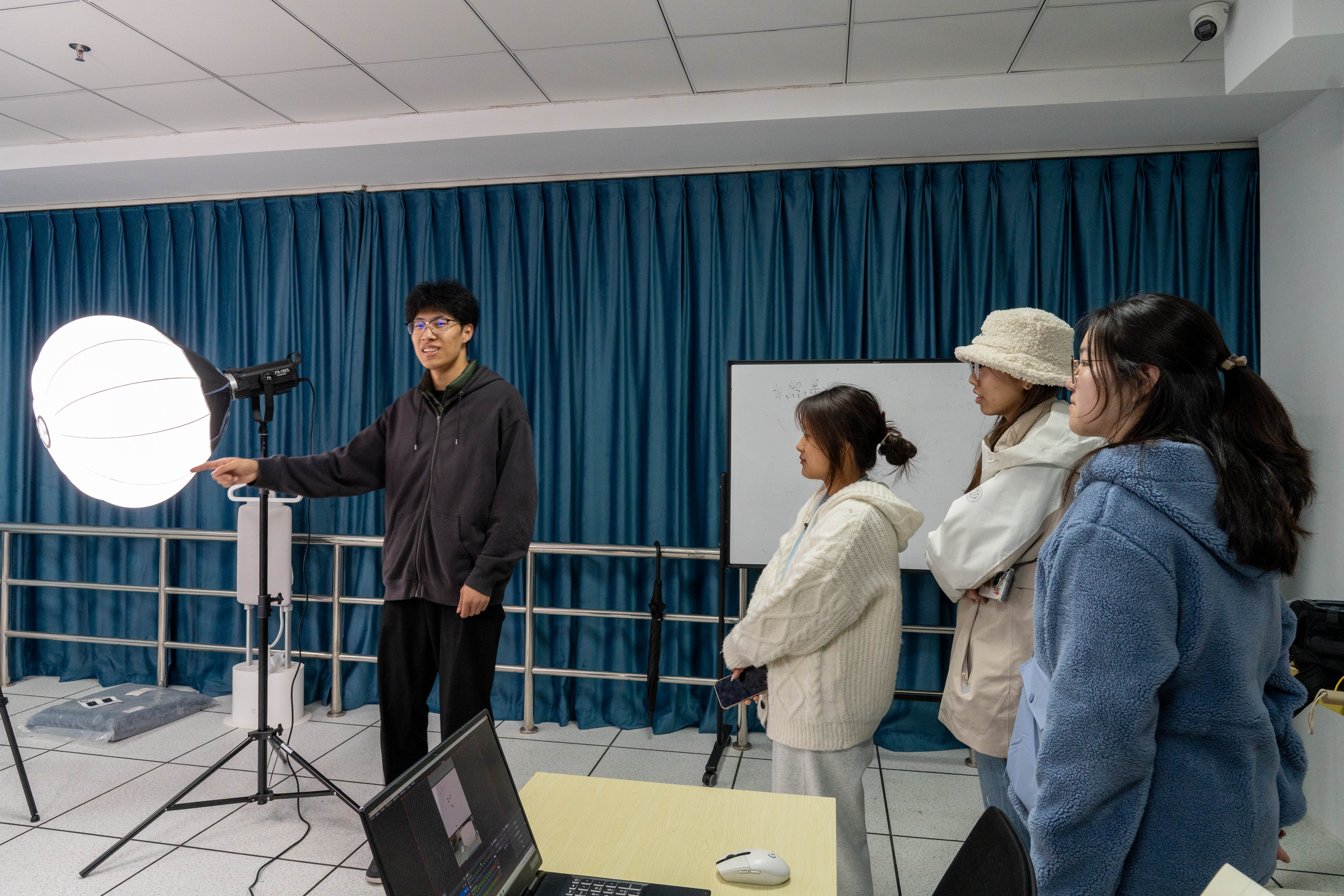 本次活动采用了线上直播、实操演练相结合的交流形式,内容丰富多样。在技术讲解环节,学长们详细阐述了直播软件的分类、灯光技术基础、设备认知、实战布光教学以及设备调试等关键知识点。通过生动的讲解和现场演示,同学们对直播设备的操作有了更加深入的了解。面对同学们遇到的各种问题,学长们都会耐心解答。