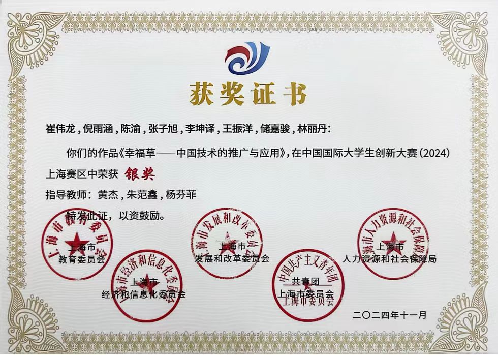 恭喜我院倪雨涵、张子旭、王振洋三位同学在2024年中国国际大学生创新大赛上海赛区中荣获银奖