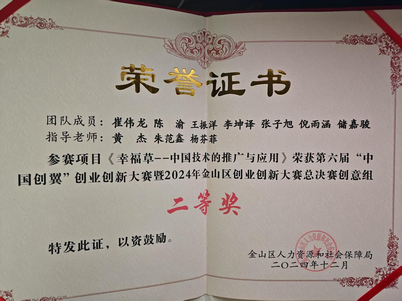 恭喜我院王振洋、张子旭、倪雨涵三位同学在第六届“中国创翼”创业创新大赛暨2024年金山区创业创新大赛总决赛中荣获创意组二等奖