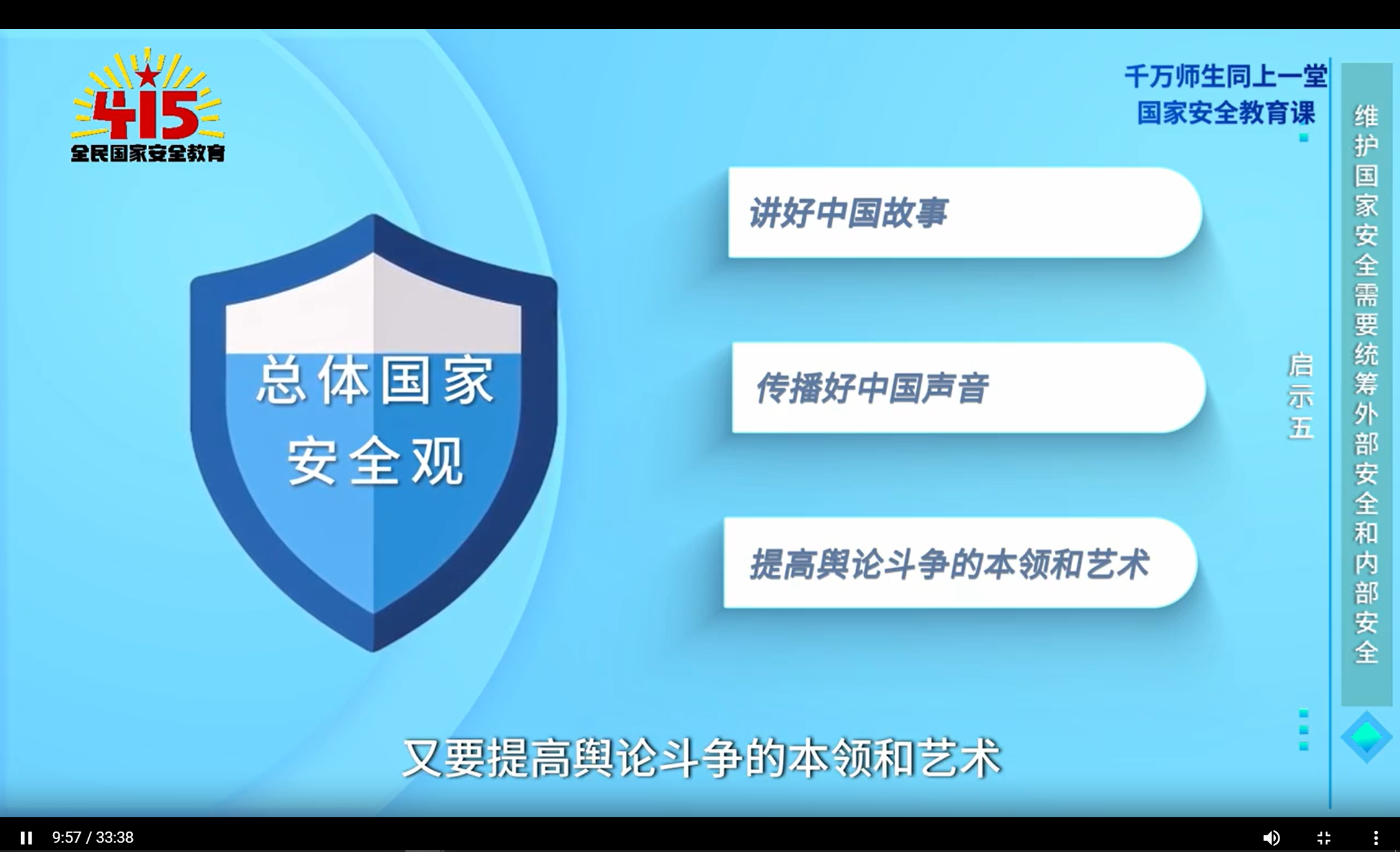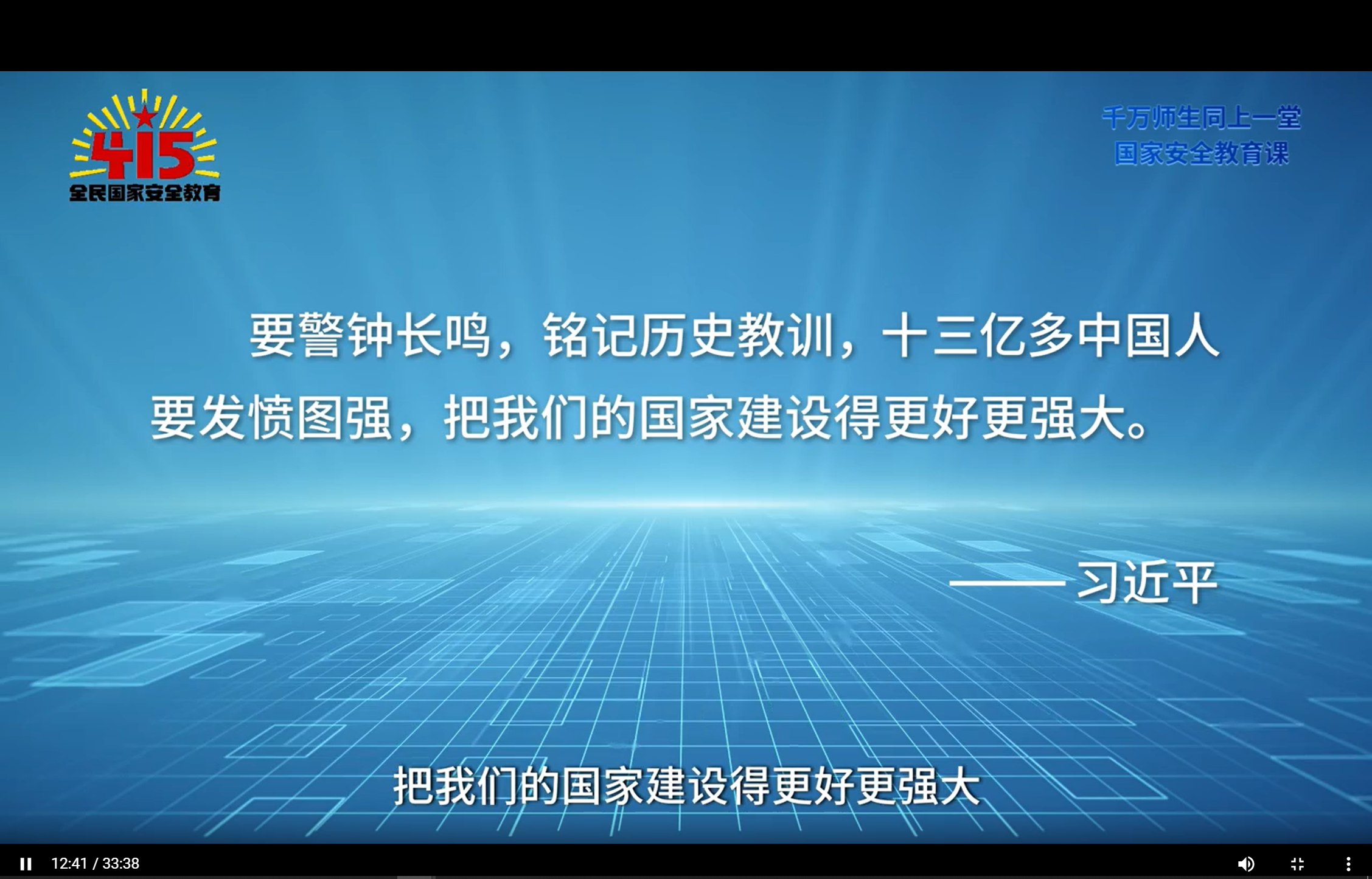 在第10个全民国家安全教育日到来之际,为深入贯彻总体国家安全观,增强师生国家安全意识和素养,4月15日,信息工程学院组织师生集体收看学习由教育部主办的“千万师生同上一堂国家安全教育课”主题公开课,引导师生树牢国家安全观念,凝聚维护国家安全的青春力量。