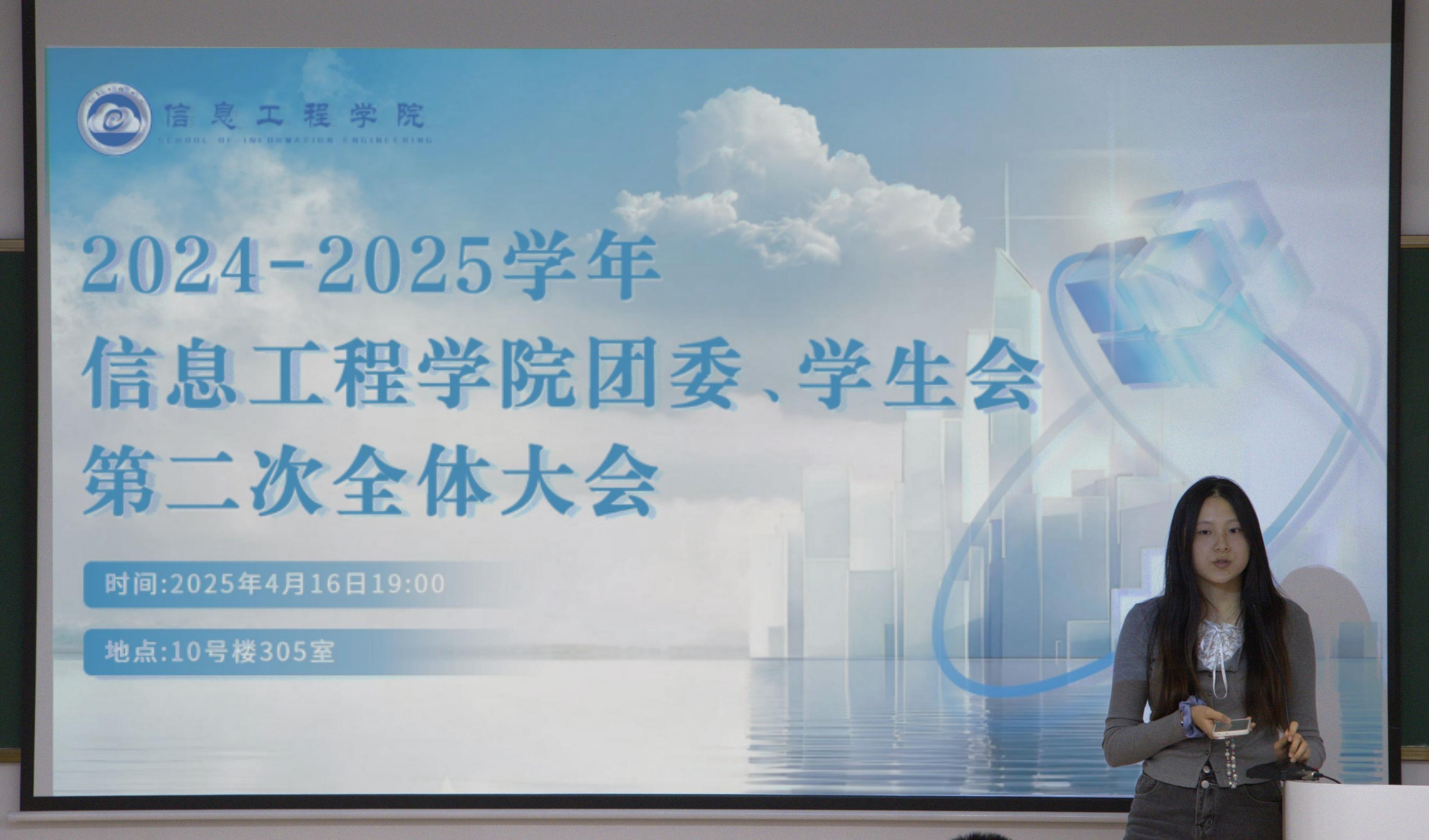 为加强团委与学生会的组织建设,提高学生干部的工作效能,2025年4月16日晚上7点,信息工程学院团委、学生会第二次全体大会在10号楼305教室顺利召开。本次大会由信息工程学院全体团委、学生会成员全体出席。