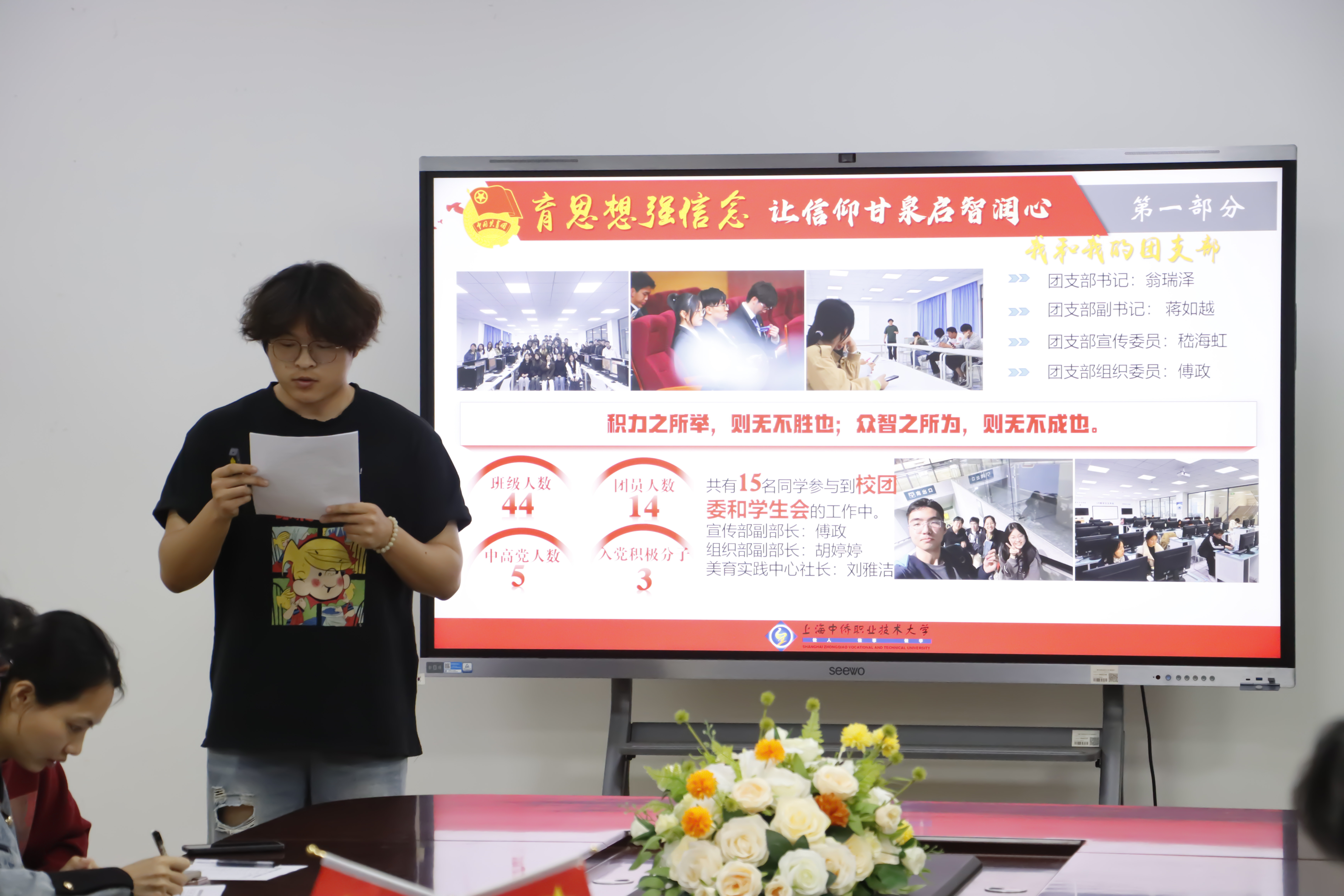 活动现场,各团支部答辩人依次登场,用精心准备的 PPT、照片等展示材料,从团支部介绍、成果展示、精神传承、志愿服务情况以及未来展望五个维度,全方位呈现团组织的工作成效与青春活力。