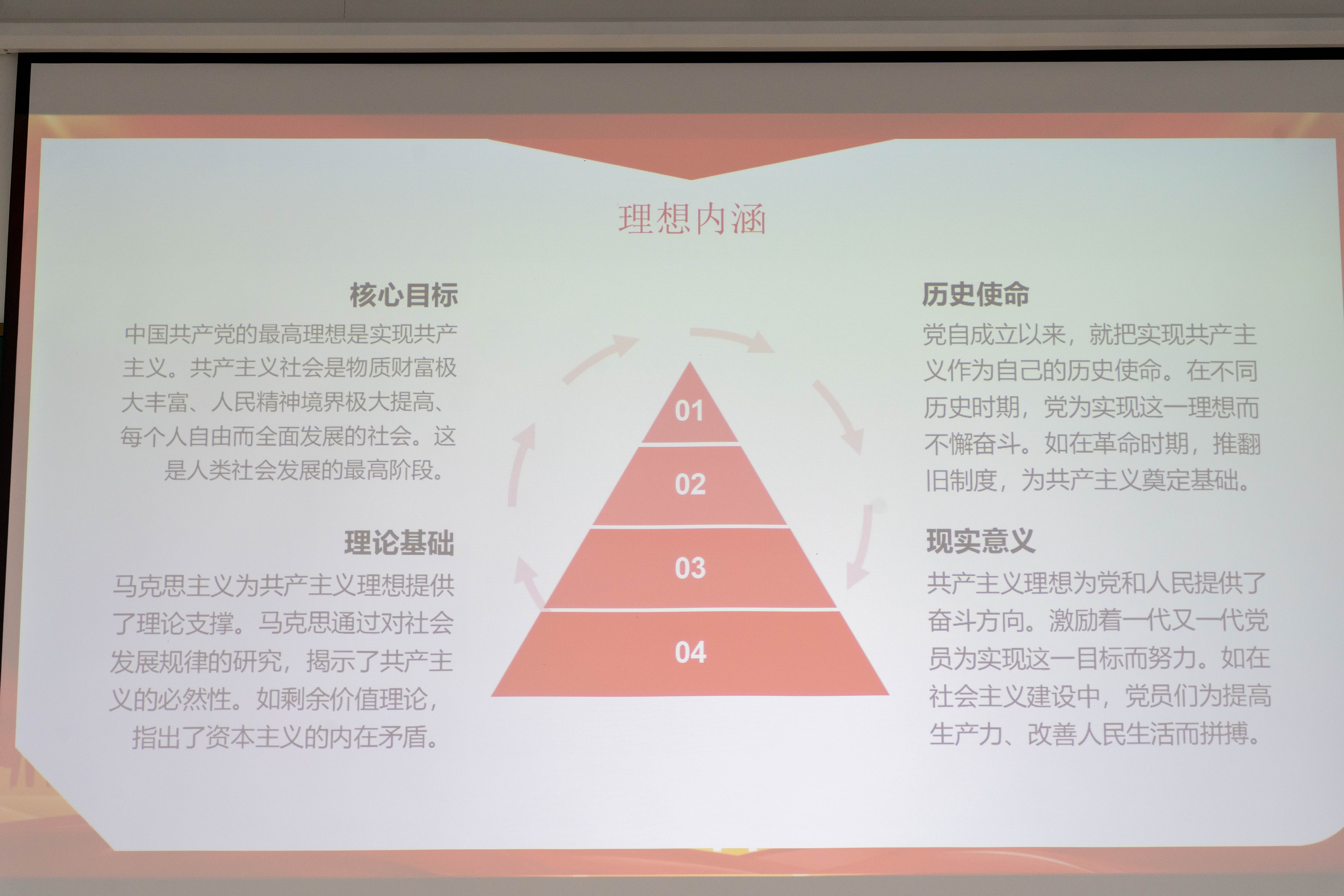 唐斌老师在党课上讲解了党的理想内涵、实现方式和意义。重点论述性质、宗旨、理想三者的辩证关系,生动展现了党的理论在实践中的强大生命力,帮助学员深刻理解党的初心使命。