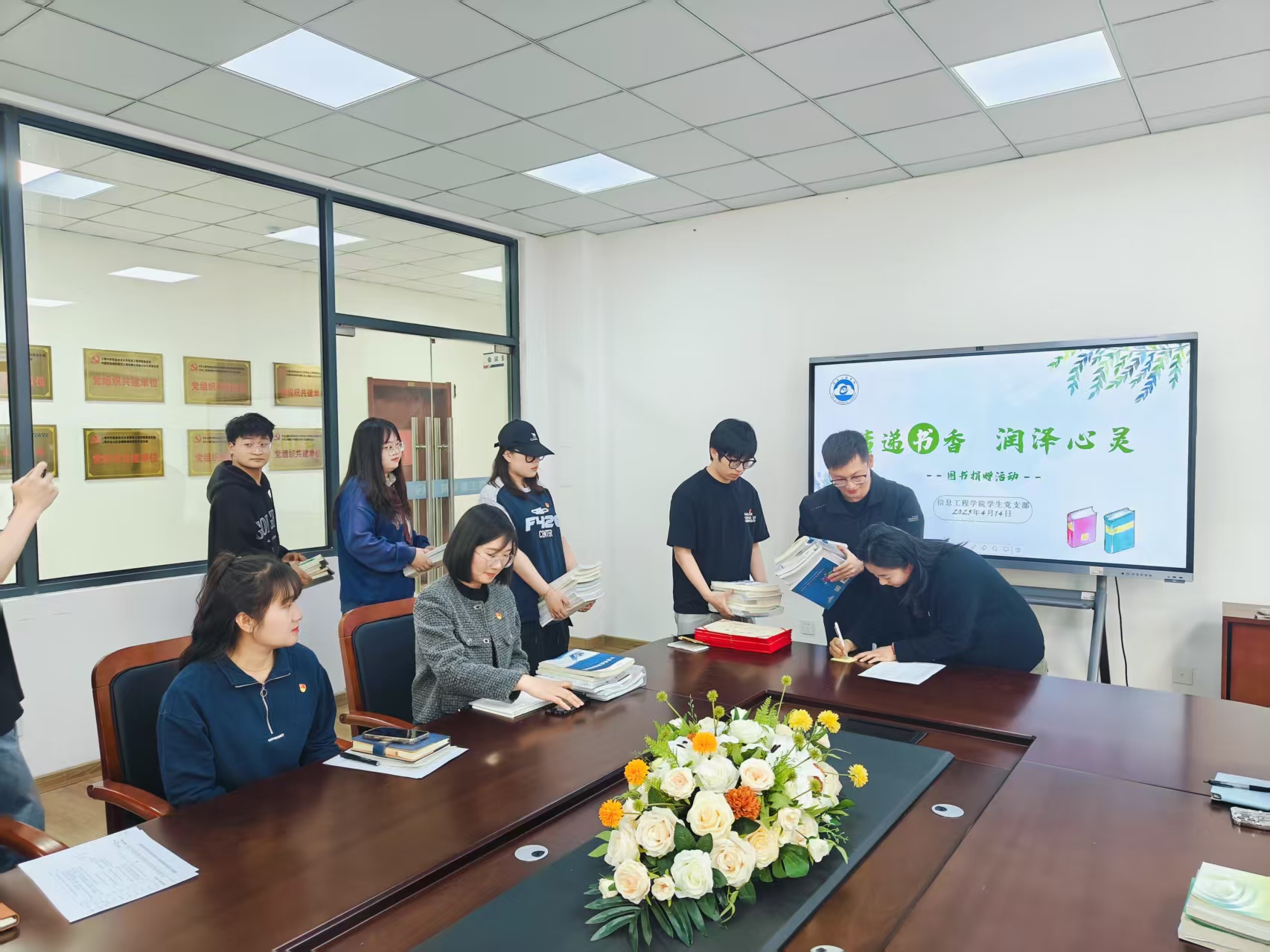 捐赠活动当日,现场气氛热烈。教师党员们纷纷带来专业书籍、经典名著等,希望能为学生提供更丰富的学习资源;学生党员们也积极行动,将自己珍藏的好书捐赠出来,分享阅读的快乐。“每一本书都承载着知识与希望,希望这些书籍能在其他同学手中发挥更大的价值。” 一位参与捐赠的学生党员说道。
