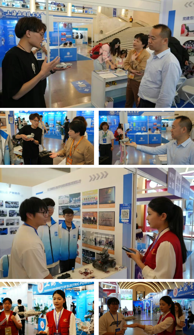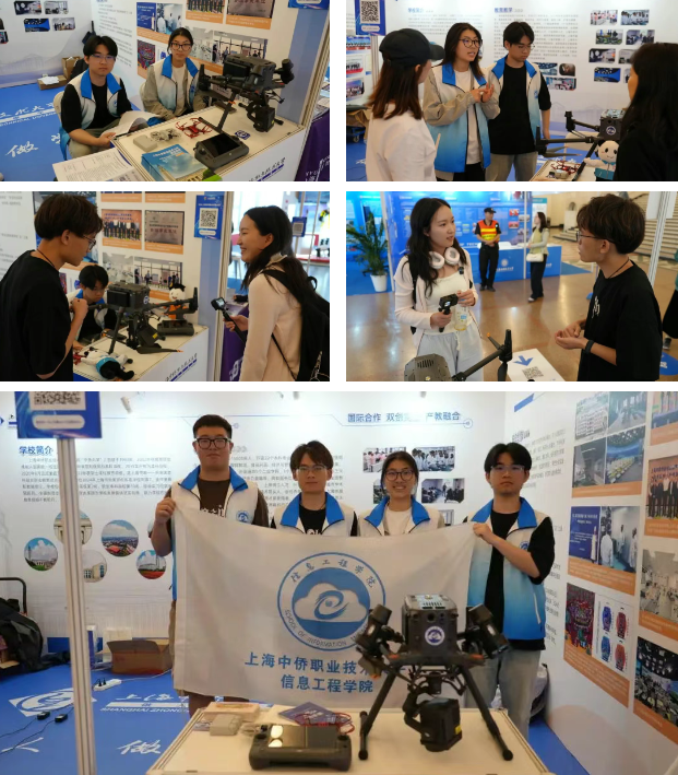 信息工程学院与包括大疆创新在内的多家行业领军企业建立了深度合作关系,共同开发课程、共建实训基地,确保教学内容与行业需求无缝对接。此次参展不仅向社会充分展现了我校职业本科教育的办学特色和育人成效,进一步推动科技教育与社会的深度链接,让更多人了解职业本科教育的多元价值。同时激励学生以技术报国为使命,成为支撑“中国智造”的高素质技能人才,为上海乃至长三角地区培养更多适应产业需求的高层次技术技能人才。