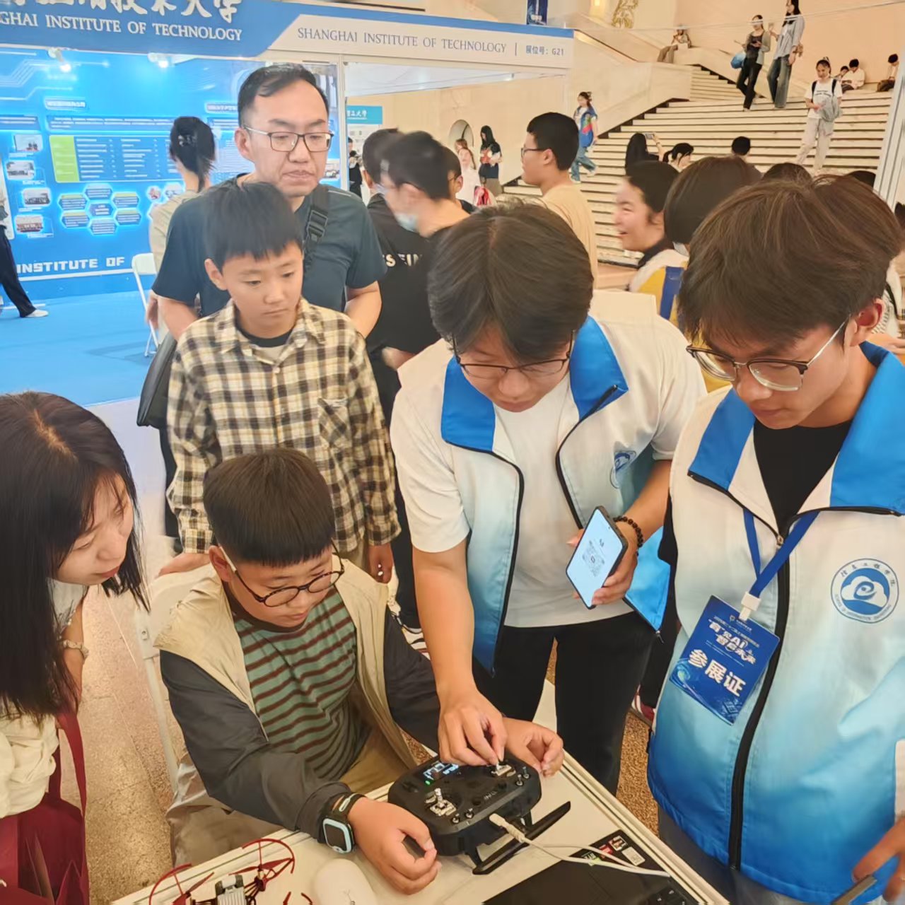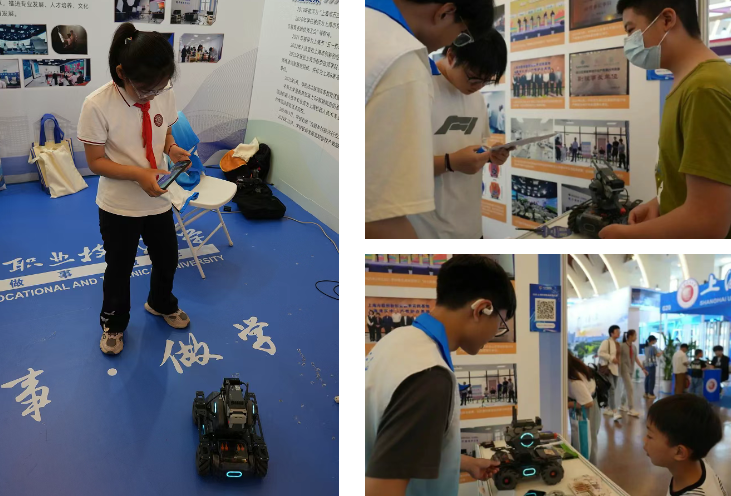 人工智能展台同样热闹非凡。大疆Tello编程展示,展现了学生通过代码实现精准控制的专业能力。
