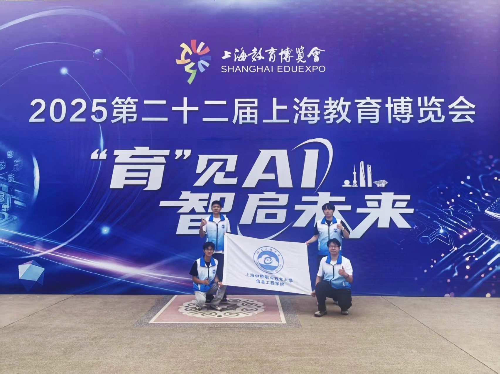 5月16日-18日,由上海教育报刊总社主办的2025第二十二届上海教育博览会在上海展览中心举行。本次展会的主题为“‘育’见AI,智启未来”。我院携无人机应用技术、人工智能等特色专业成果亮相展会。学院师生志愿者团队通过前沿设备演示、沉浸式互动体验,向现场媒体、教育界嘉宾及广大市民展现了职业本科教育的科技魅力与实践成果,成为博览会中央大厅焦点展区之一。