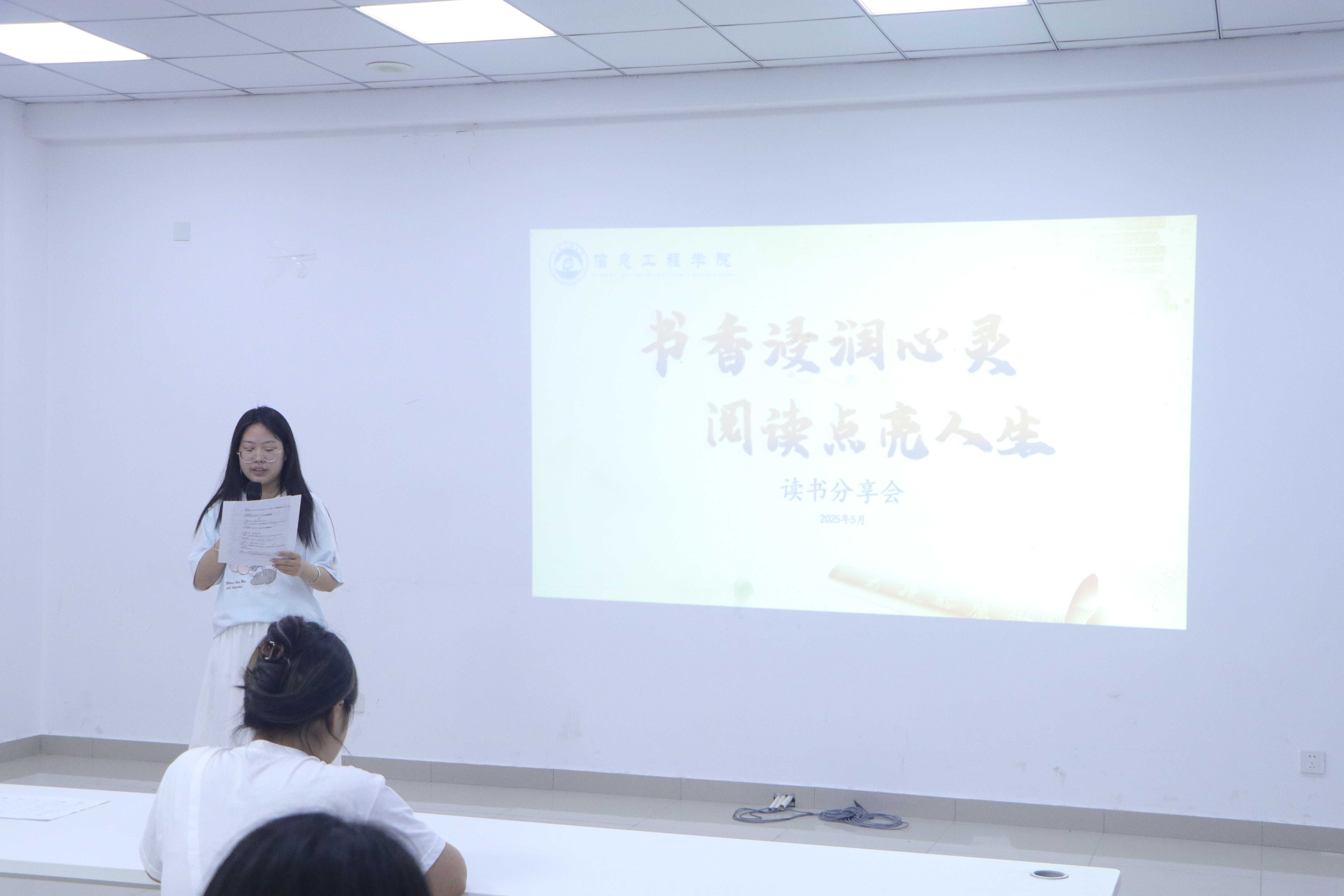 为深化校园文化建设,激发学生阅读热情,营造浓厚书香氛围,2025年5月28日8点,由信息工程学院主办的“书香浸润心灵,阅读点亮人生”主题读书会在9号楼501教室顺利举行。来自不同年级的师生齐聚一堂,共赴这场充满思想与活力的阅读盛宴。