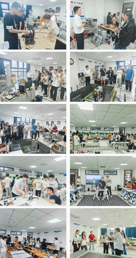 活动设置互动体验环节,部分学生在教师指导下进行无人机模拟操控,尝试完成简单飞行任务;在人工智能互动区,师生与智能机器人对话。教师结合课程实训与技能竞赛,讲解实验室在人才培养中的实践作用,让来访师生直观认识科技创新在教育中的价值。