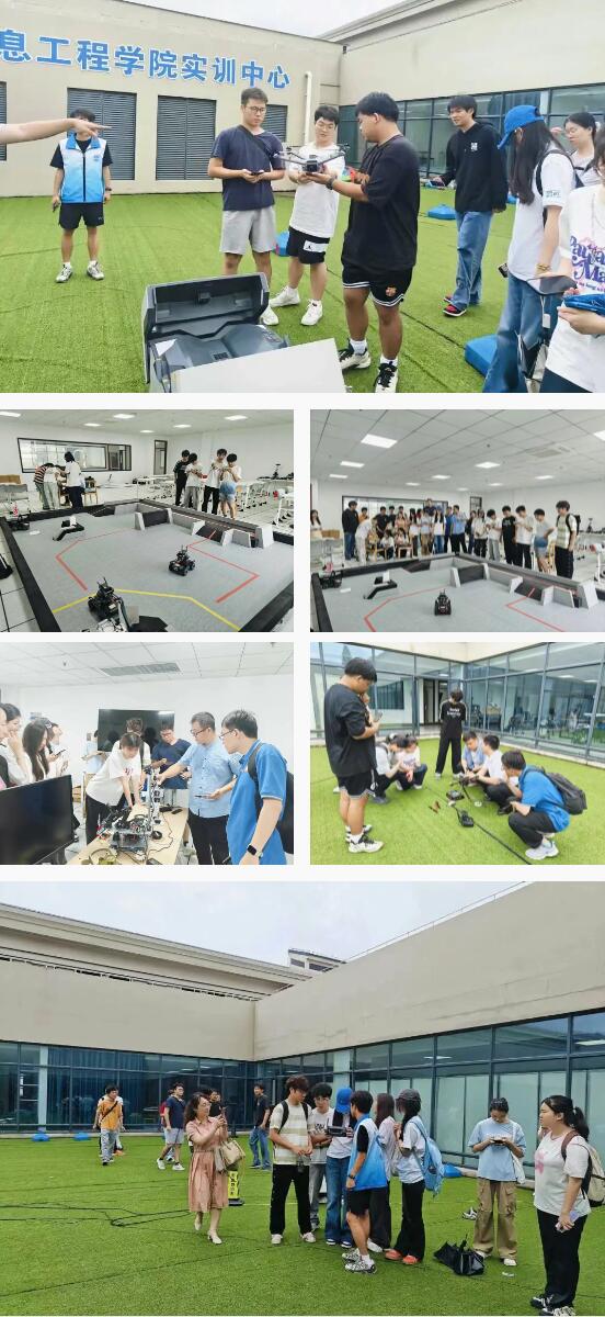 专业教师带领来访师生参观信息工程学院实训中心,重点介绍人工智能和无人机专业相关实训室。在人工智能实训室,教师结合学生比赛训练场景,展示智能算法应用成果;无人机实训室中,师生了解无人机组装、调试流程及在测绘、巡检等领域的应用。