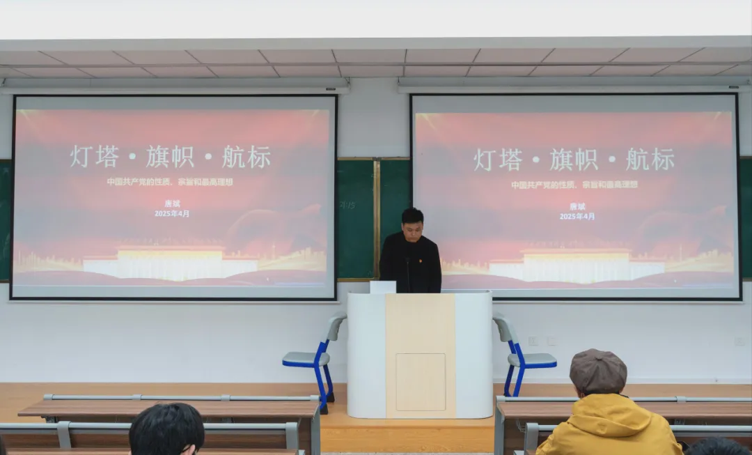 唐斌老师还对党的理想内涵、实现方式及其重要意义进行了深入讲解。他重点论述了党的性质、宗旨、理想三者之间辩证统一的关系,生动展现了党的理论在实践中所蕴含的强大生命力,助力大家深刻理解党的初心和使命。