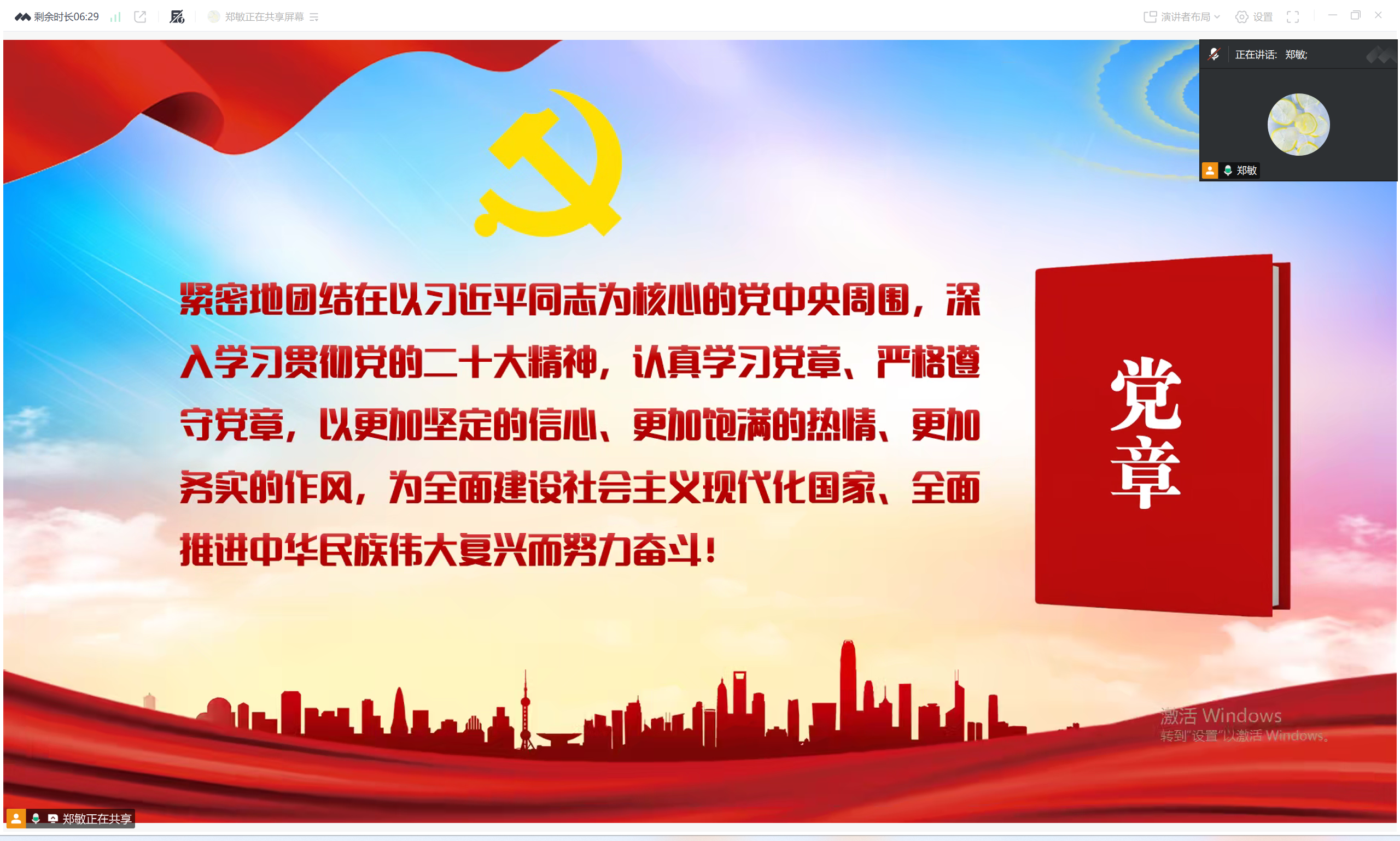 学院党总支书记刘群总结表示,党章承载并集中体现了党的性质宗旨和初心使命,从“全心全意为人民服务”的宗旨,到为中国人民谋幸福、为中华民族谋复兴的奋斗目标,字里行间彰显着共产党员的责任与担当。不断增强担当精神,把对党章的学习内化于心,外化于行,切实把党章学习成果及时转化为实际行动。