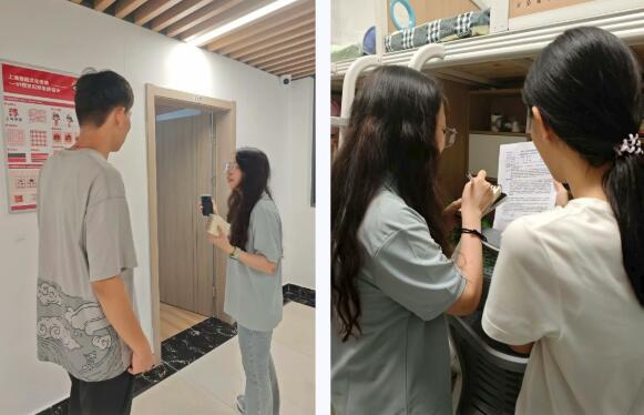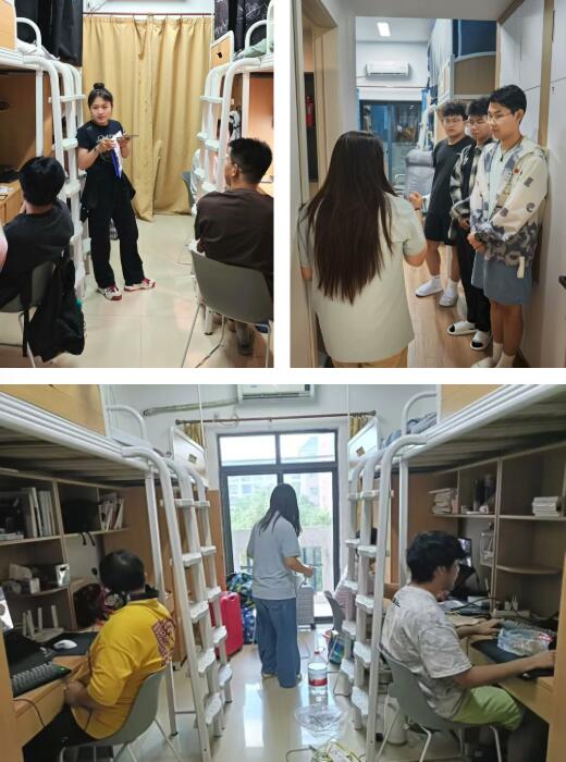 此次检查重点围绕宿舍安全隐患、卫生状况、文化建设等方面展开。辅导员老师们逐一排查了宿舍内是否存在违规使用大功率电器、私拉乱接电线、存放易燃易爆物品等安全隐患,反复叮嘱同学们要牢固树立“安全第一”的意识,严格遵守学校宿舍管理规定,注意用电安全、财物安全和人身安全,共同维护宿舍这个“家”的安全稳定。同时,辅导员们也鼓励同学们保持良好的宿舍卫生环境,勤打扫、勤通风,合理作息,加强体育锻炼,以饱满的精神状态迎接新学期的挑战;并希望学生们积极调整状态,做好新学年的规划,以更加昂扬向上的精神面貌投入到新学期的学习和生活中去。